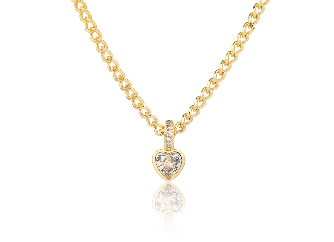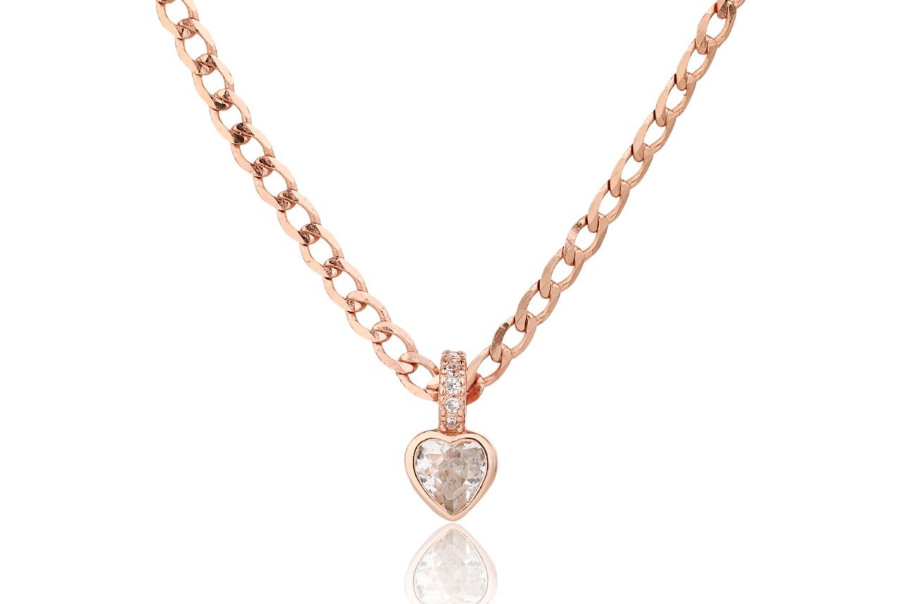 שרשרת גורמט לב משובץ זרקונים